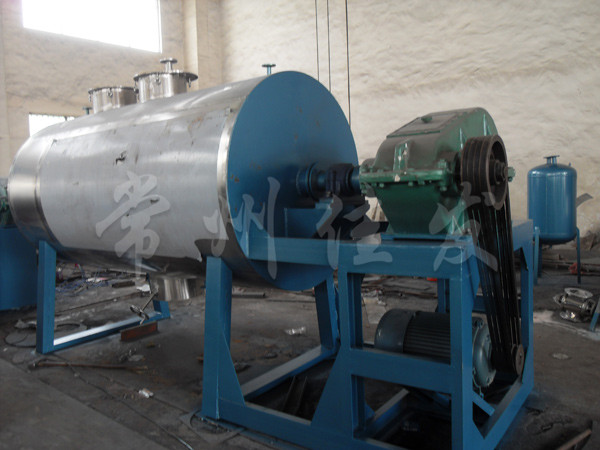 本機是一種新型臥式間歇式真空干燥設(shè)備,濕物料經(jīng)傳導(dǎo)蒸發(fā),帶有刮板攪拌器不斷清除熱面上的物料,并在容器內(nèi)推移形成循環(huán)流,水份蒸發(fā)后由真空泵抽出。